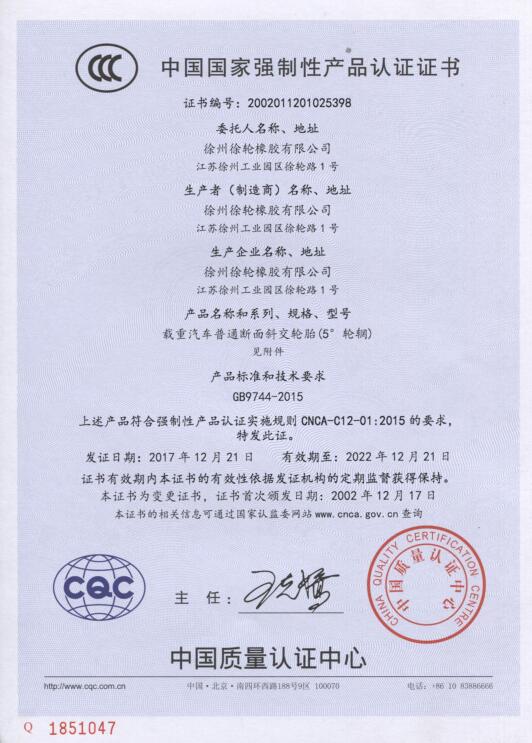 3C證書(shū)-輕型載重輪胎