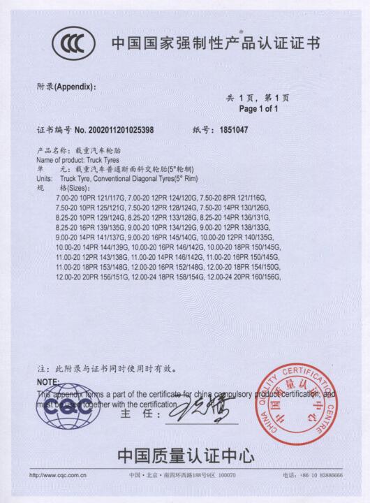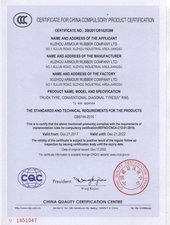 3C證書(shū)-載重輪胎