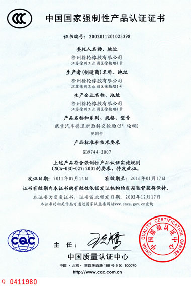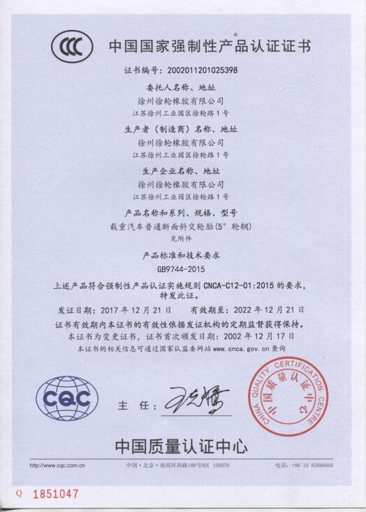 質(zhì)量是企業(yè)的生命,是企業(yè)得以生存和發(fā)展的基礎。公司自2006年創(chuàng )辦以來(lái),徐輪橡膠就是一直對產(chǎn)品品質(zhì)孜孜以求,精益求精。以“質(zhì)量是生命 科技求領(lǐng)先 過(guò)程零缺陷 服務(wù)到永遠”為質(zhì)量方針,徐州徐輪橡膠有限公司建立健全了科學(xué)完善的質(zhì)量保證體系,自2009年起先后通過(guò)了ISO9001-2008、CCC、美國DOT、歐洲E-mark等質(zhì)量體系認證。