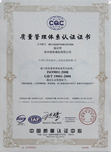 質(zhì)量是企業(yè)的生命,是企業(yè)得以生存和發(fā)展的基礎。公司自2006年創(chuàng )辦以來(lái),徐輪橡膠就是一直對產(chǎn)品品質(zhì)孜孜以求,精益求精。以“質(zhì)量是生命 科技求領(lǐng)先 過(guò)程零缺陷 服務(wù)到永遠”為質(zhì)量方針,徐州徐輪橡膠有限公司建立健全了科學(xué)完善的質(zhì)量保證體系,自2009年起先后通過(guò)了ISO9001-2008、CCC、美國DOT、歐洲E-mark等質(zhì)量體系認證。